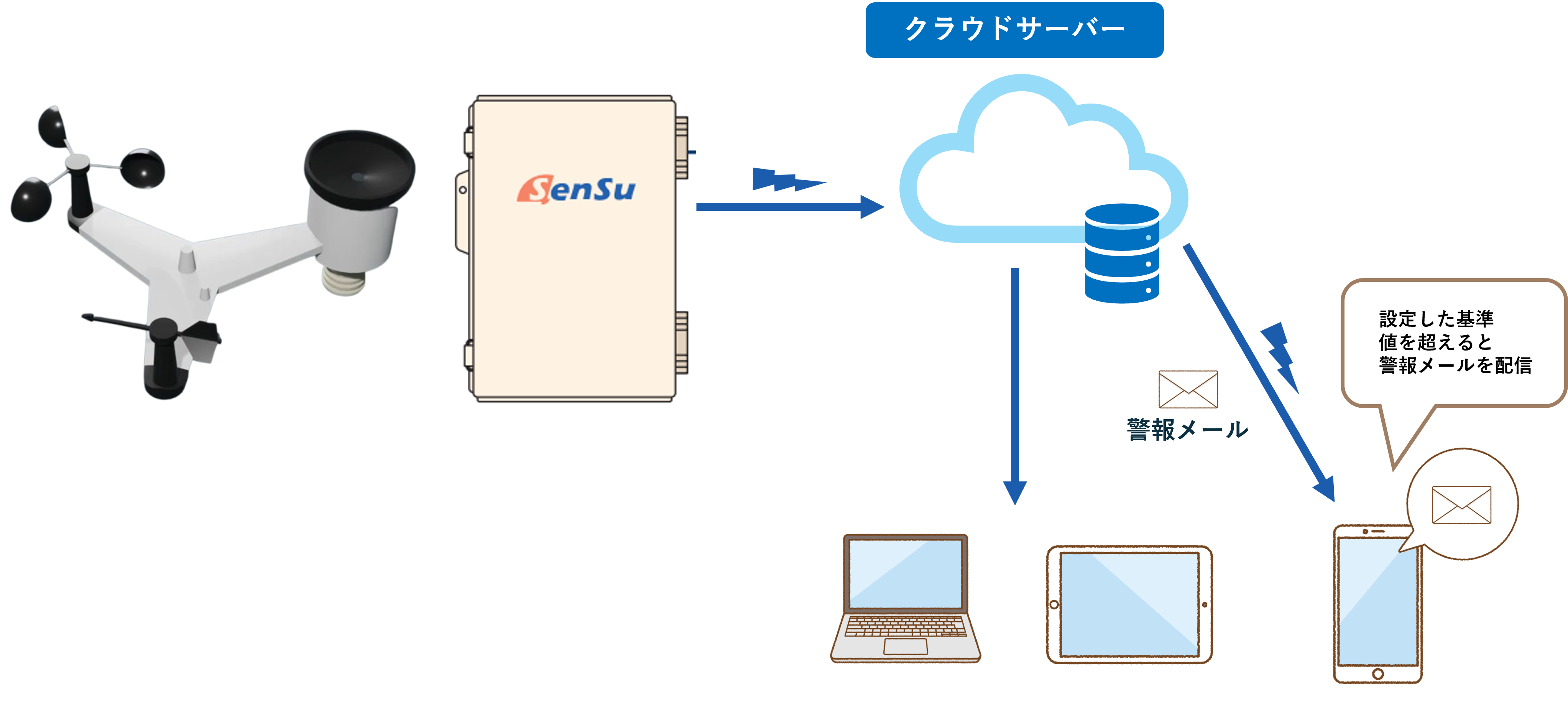 ●しきい値の設定やメールでのアラーム機能を備えています。