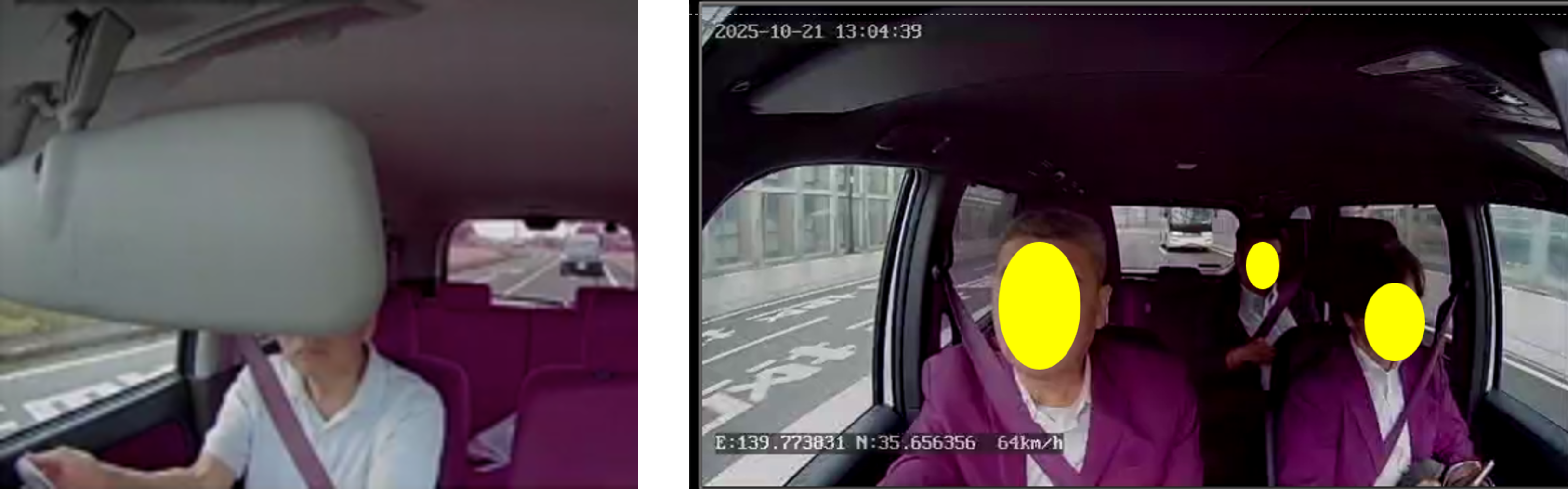 ●車内カメラは暗視機能搭載で夜間走行中の暗い車内もクリアな画像で録画できます。