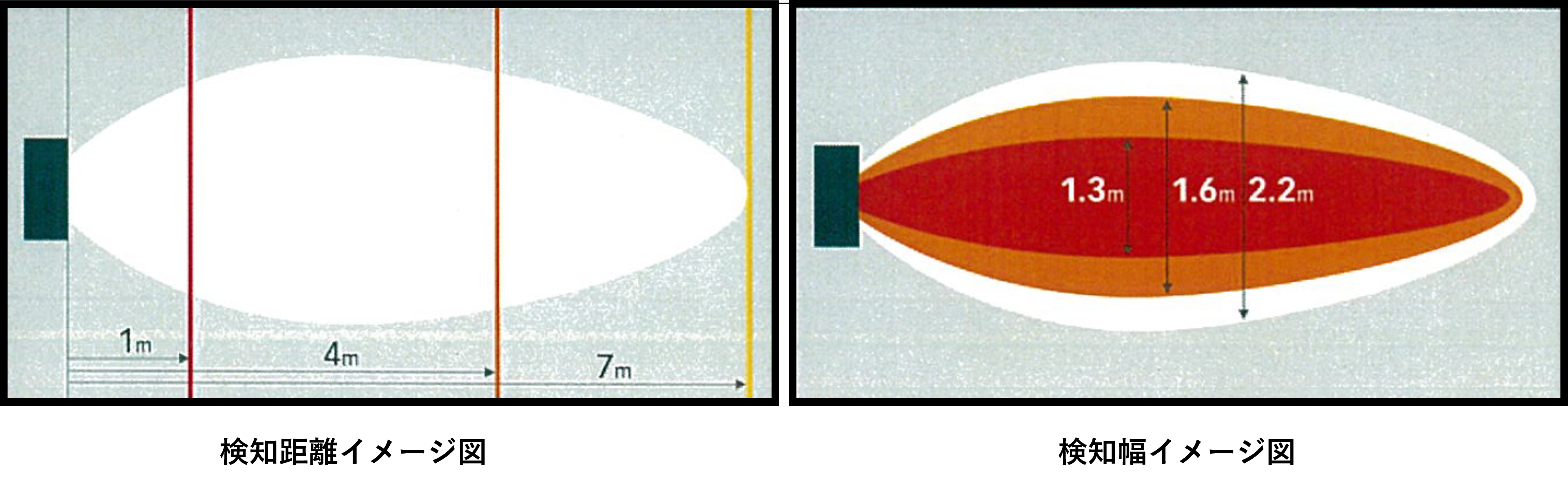 ●12V車両でも最大検知幅が2.2mなので、大型機も一台でカバーできます。