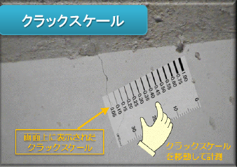 付属タブレットに映った映像上にクラックスケールを表示、ひび割れの視認が容易になり静止画としても保存可能です。