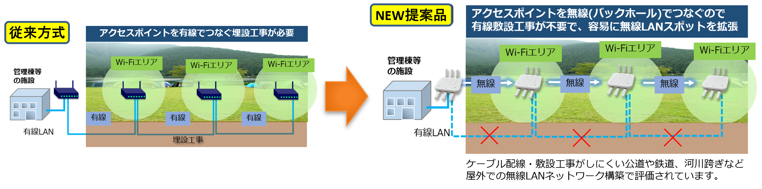 LAN配線工事の要らない“無線バックホール式”でアクセスポイントの拡張が可能です。