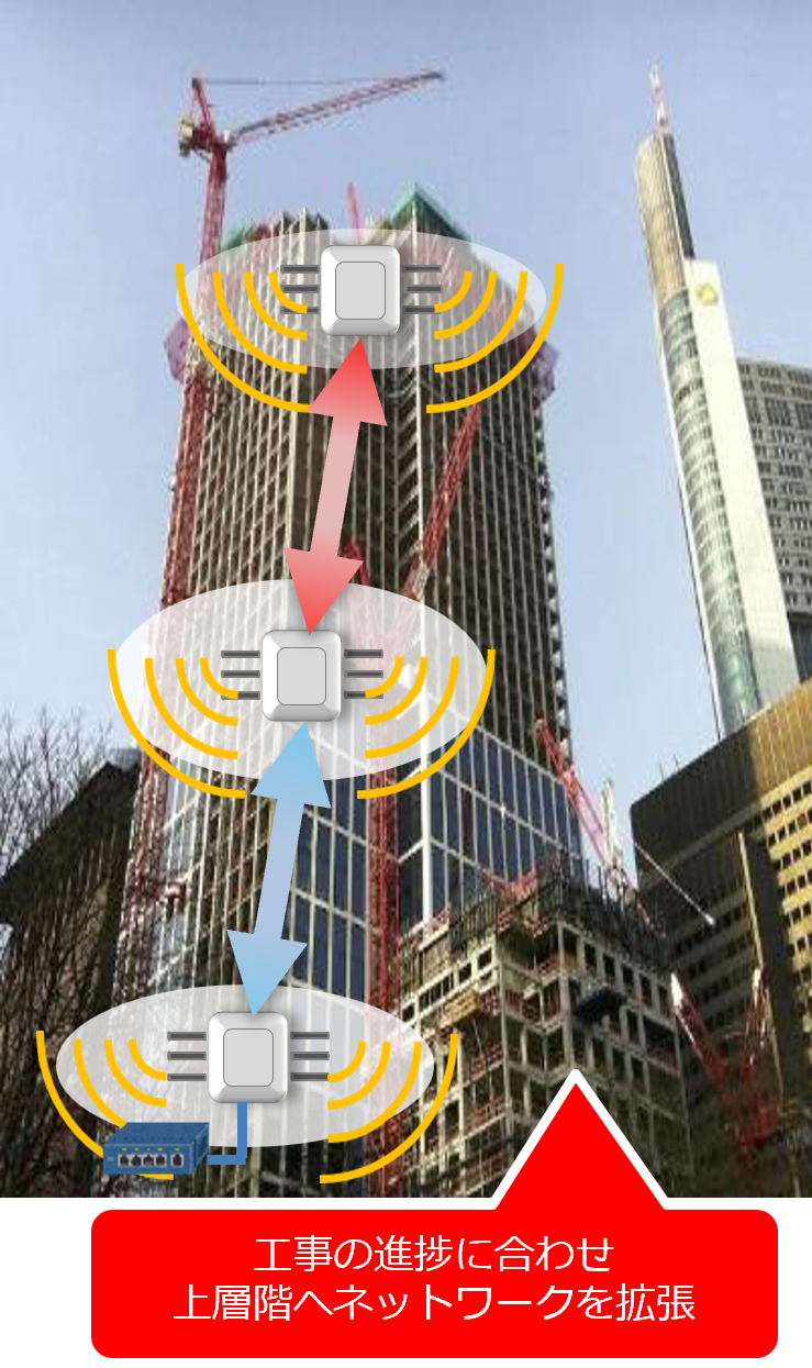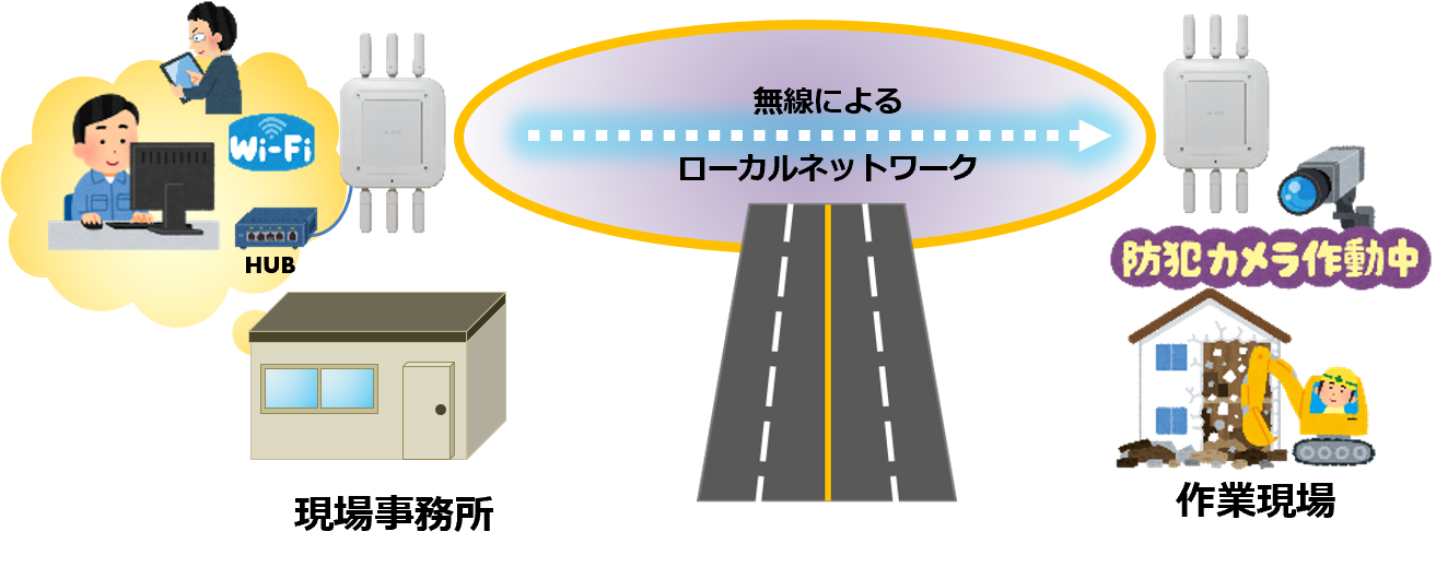 ①有線LANの敷設が困難な土木工事現場や建築現場に。