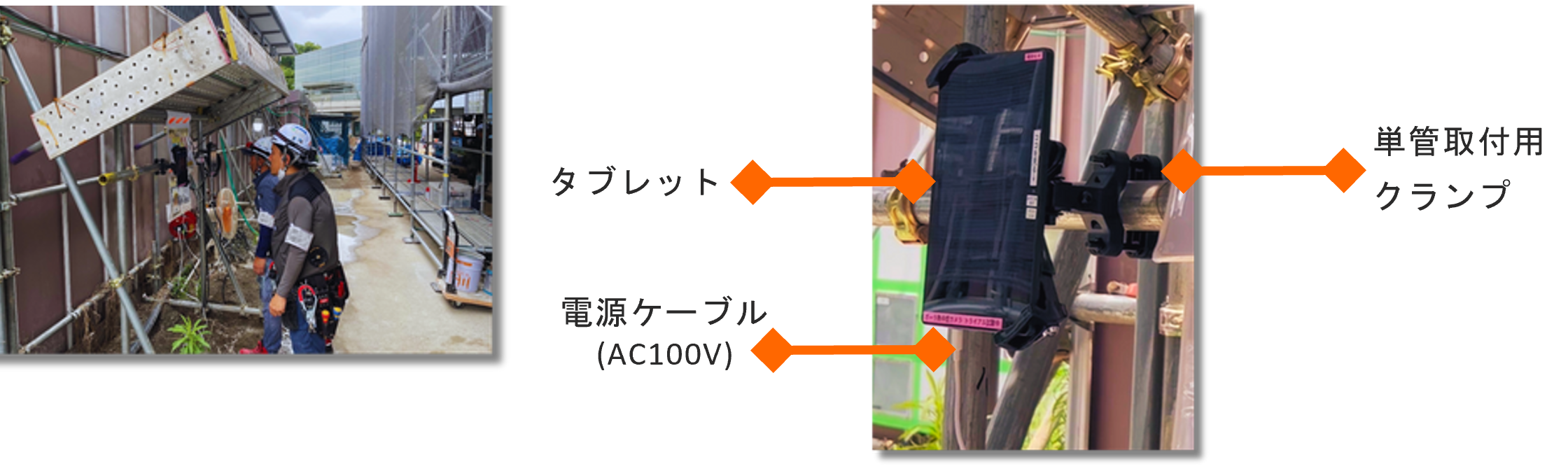 | ・タブレットホルダー(単管クランプ装着済) | ・タブレットホルダー用取説 |
