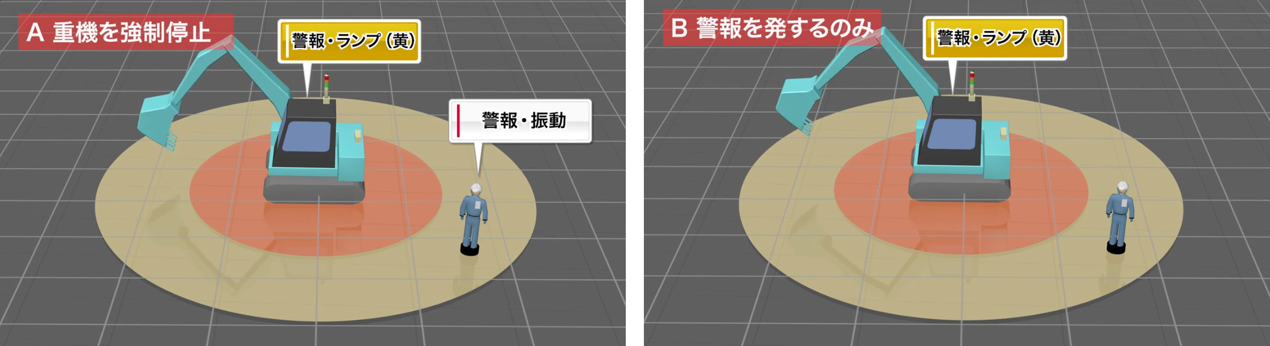 重機側の警報ランプ:赤点灯