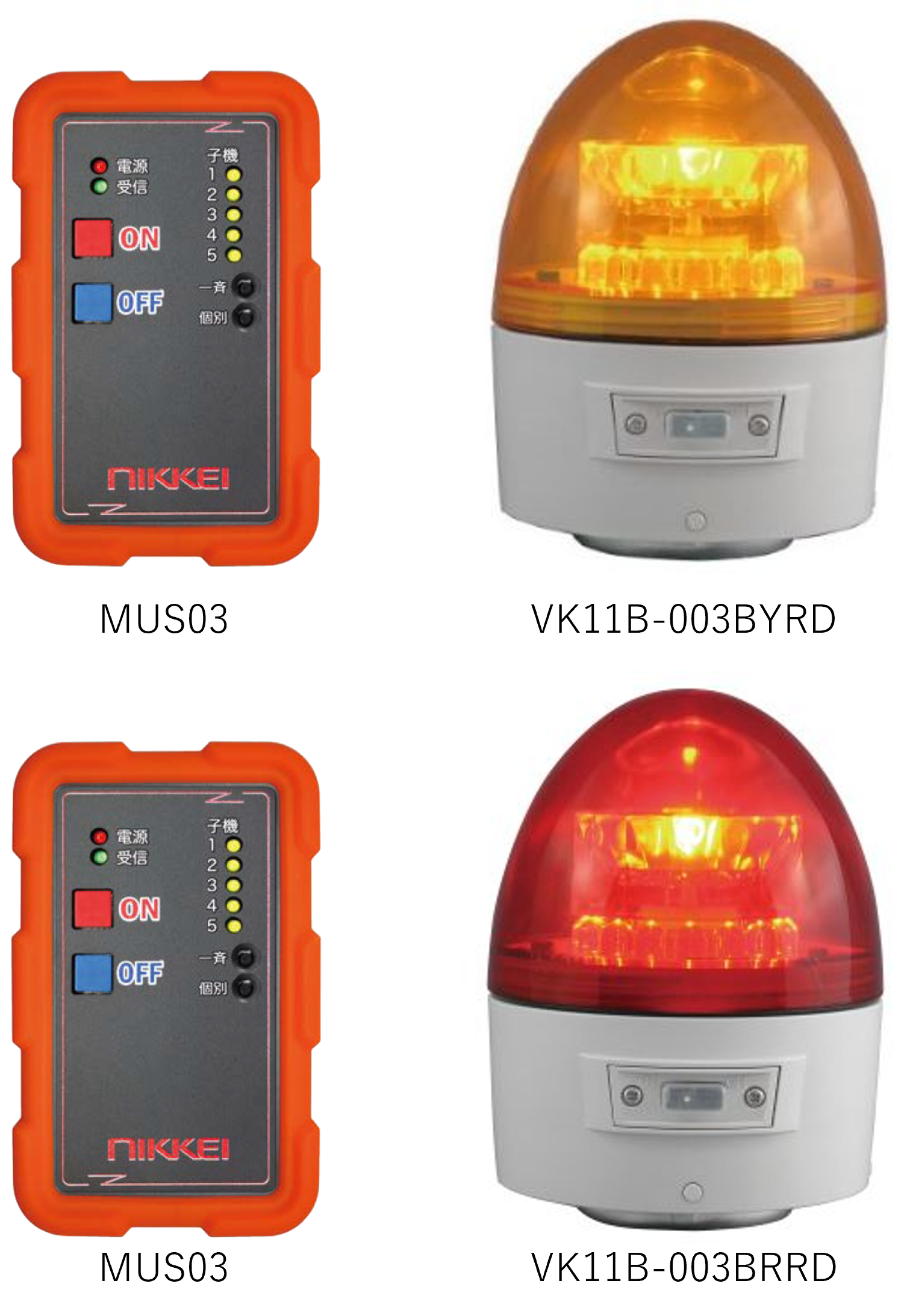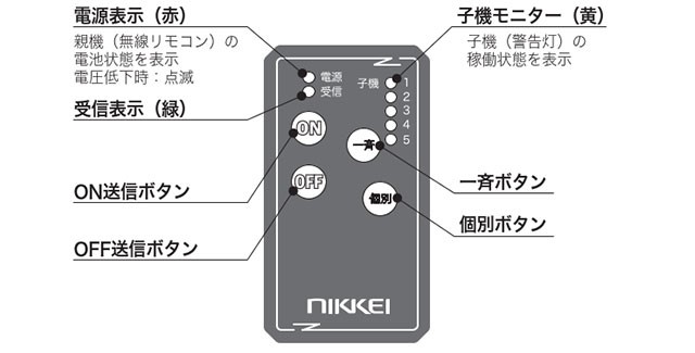 ※複数操作の場合、異なる色の警告灯の操作はできません。(例:赤のリモコンで操作できるのは赤のみ、黄は操作不可)