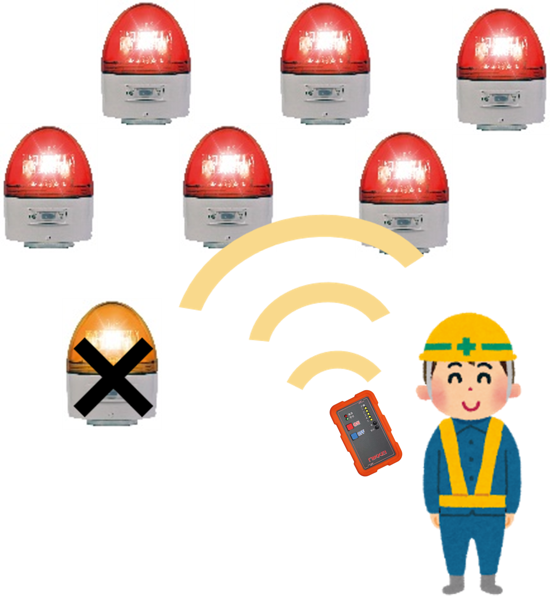 ※複数操作の場合、異なる色の警告灯の操作はできません。(例:赤のリモコンで操作できるのは赤のみ、黄は操作不可)