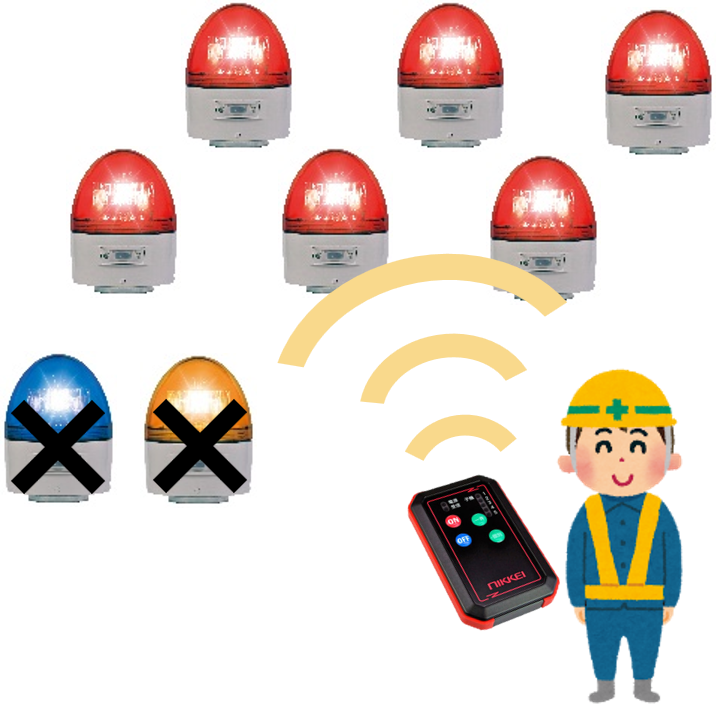 ※複数操作の場合、異なる色の警告灯の操作はできません。(例:赤のリモコンで操作できるのは赤のみ、黄は操作不可)