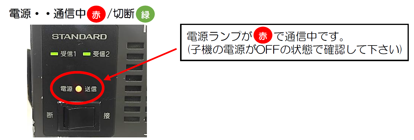| 電源 | 親機:DC12~24V、AC100V、子機:バッテリ | ||