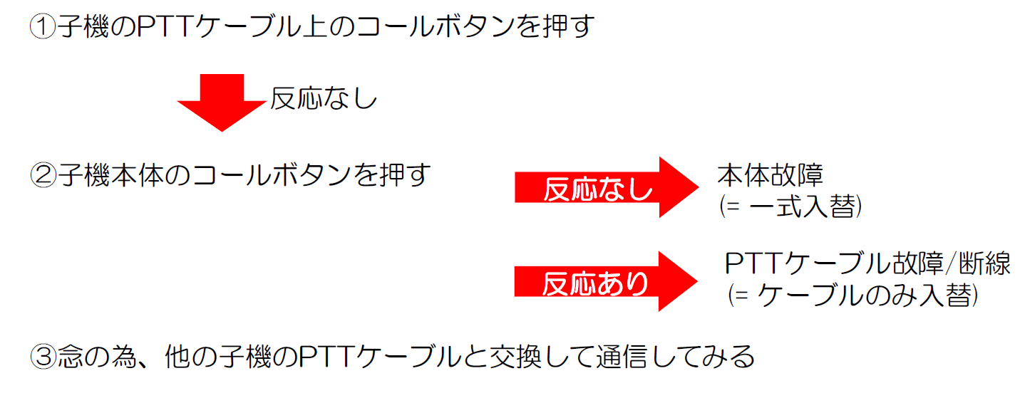 A.ケーブルの不具合なのか、子機自体の不具合なのか確認します。