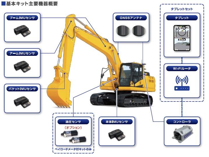 ●センサーやケーブルなど必要な機材を後付けすれば一般的な小型バックホウがICT建機に早変わりします!