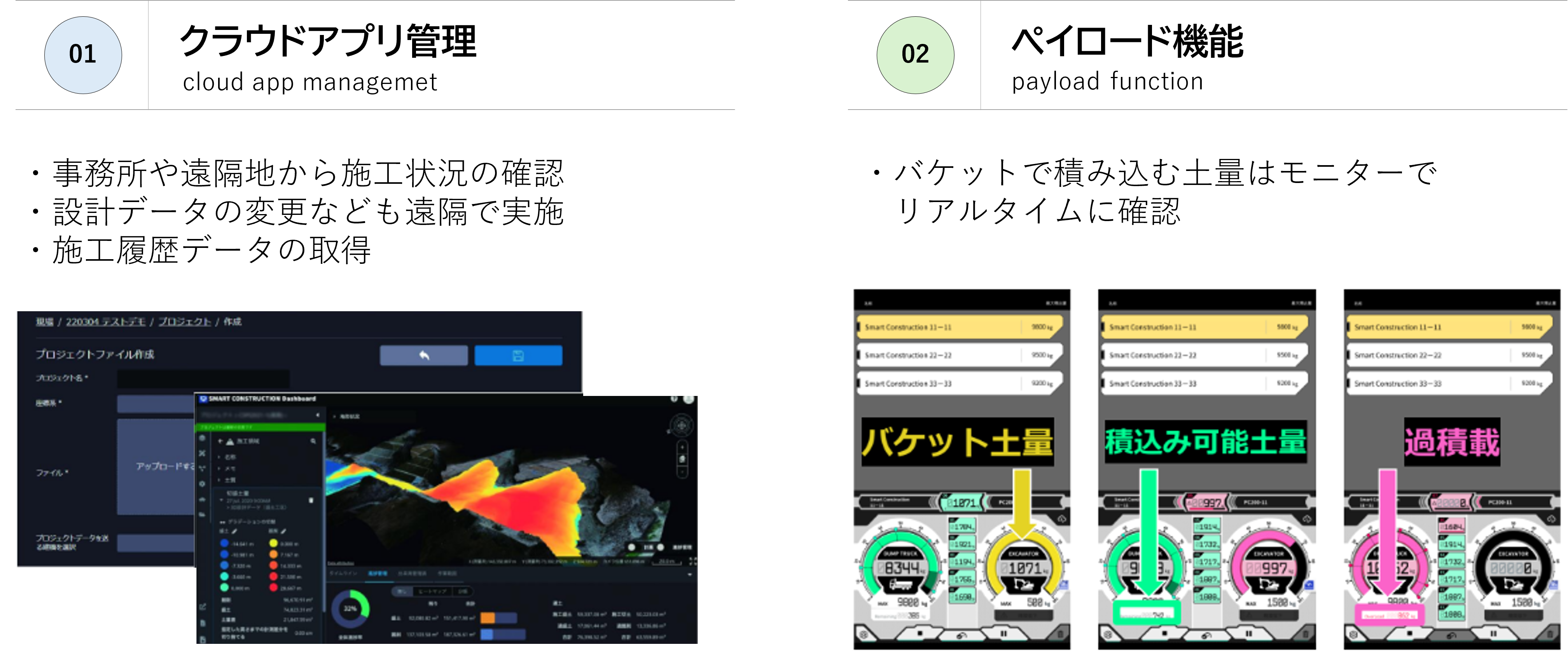 装着することで、バックホーの位置と方向、傾きを演算しバケットの刃先位置の座標を取得します。