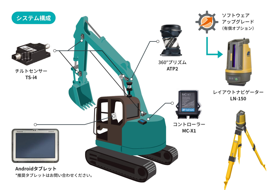 ●従来の杭打ち・墨出し作業を行う杭ナビが、マシンガイダンスセンサーへと早変わりしたシステムです。