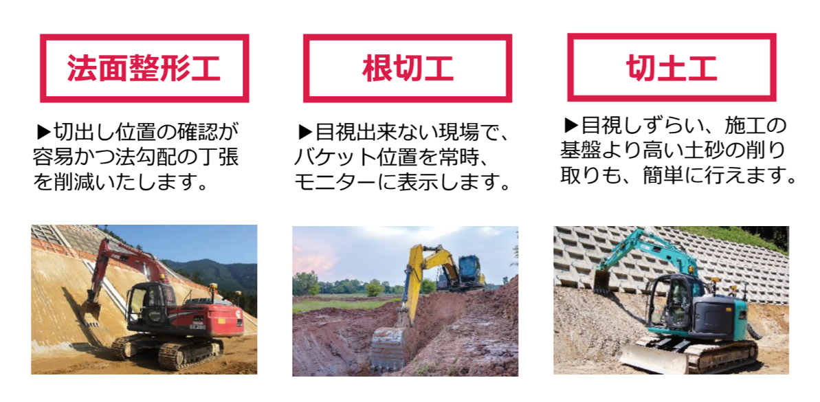 ●一般土工に ●法面整形に ●造成工事に ●河川工事に ●除染工事に