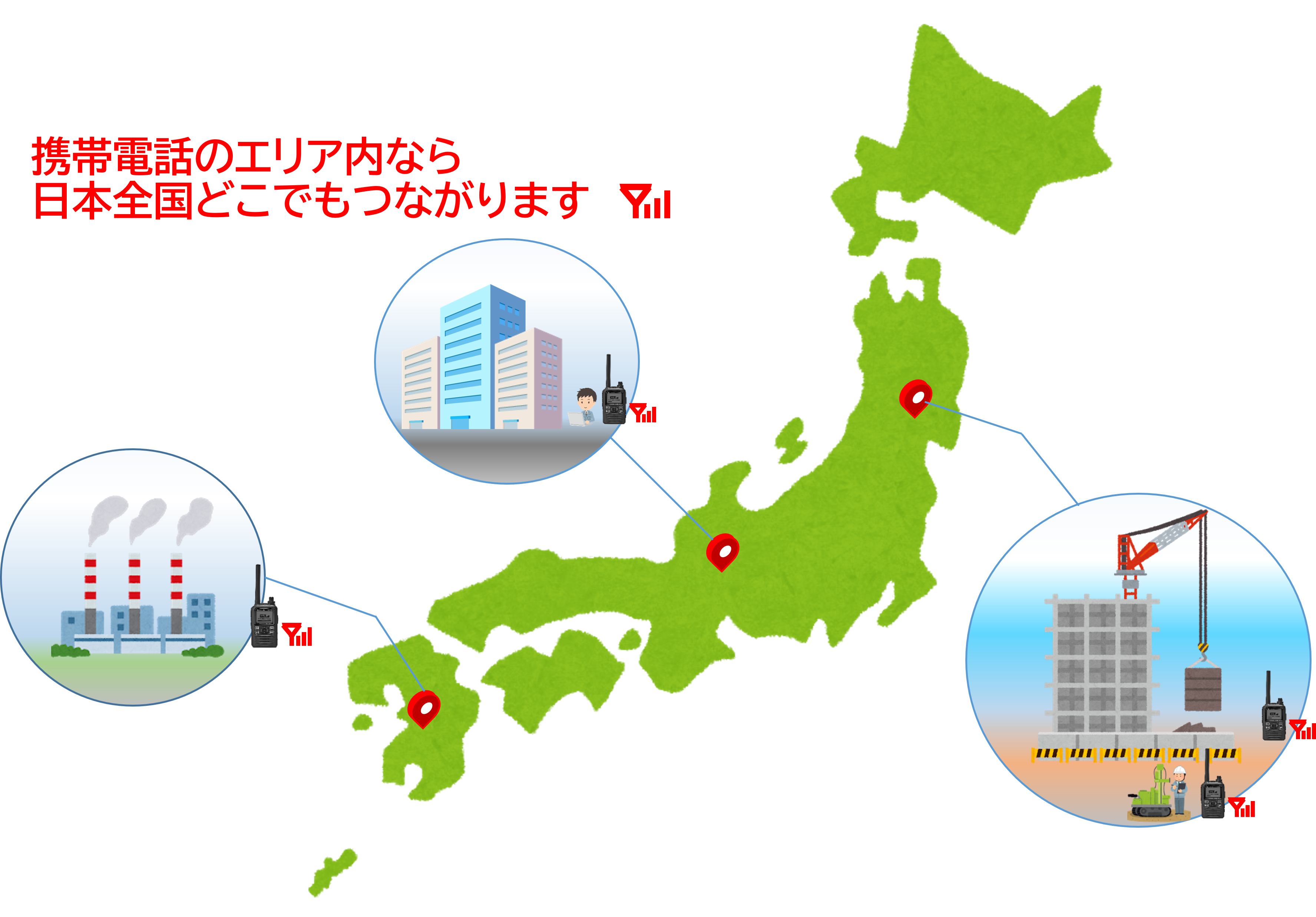高層階や地下・トンネル何など、携帯電話の電波がないエリアには、