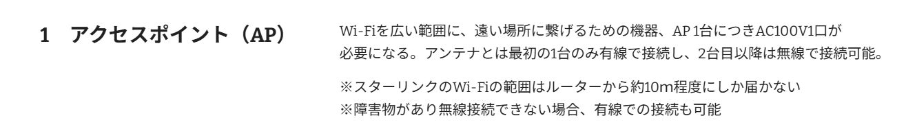 ・スターリンクから離れた場所(約10m以上)での使用の場合、別途アクセスポイントを使用する必要があります。
