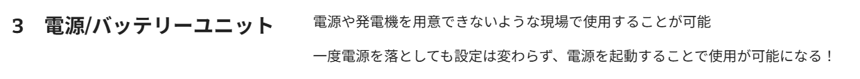 ・山間部で(発電機やバッテリーユニットと組み合わせて使用)