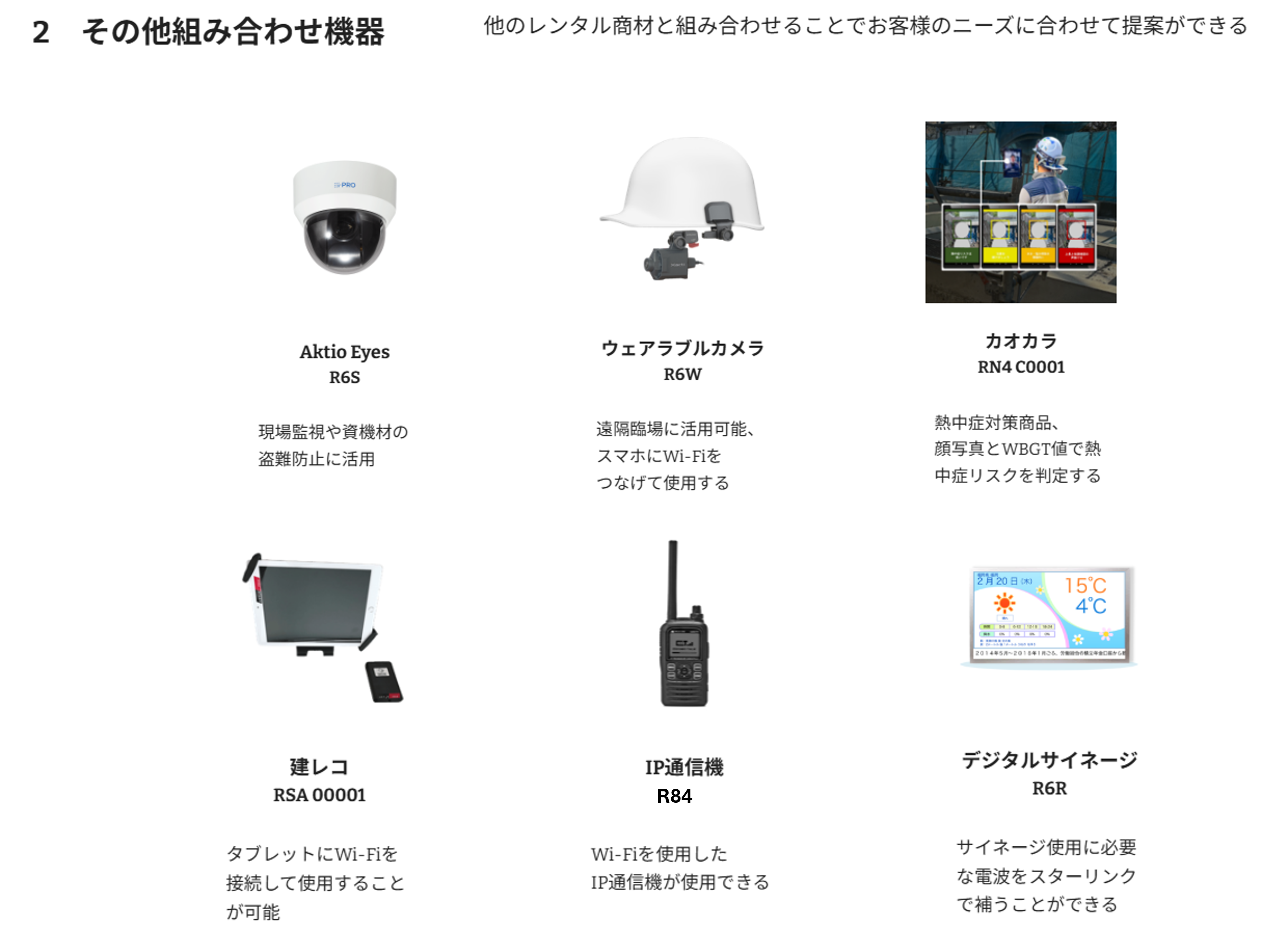 | クラウドカメラ | AktioEyes | R6S 10006 001(PTZ) R6S 10007 001(赤外線) |