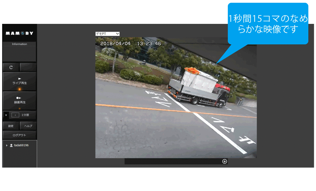 - ●1秒間15コマと滑らかな映像が閲覧できます。
